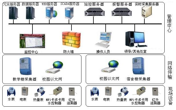 系統(tǒng)概述 基于物聯(lián)網(wǎng)、大數(shù)據(jù)、云計算及移動互聯(lián)網(wǎng)等新興技術的快速發(fā)展和不斷融合,新天科技順應市場潮流,在自身現(xiàn)有的技術基礎上,開拓性地開發(fā)推出針對校園中電量消耗、燃料消耗、熱量消耗、冷量消耗及水資源消耗的數(shù)據(jù)采集、傳輸及統(tǒng)計分析的智慧校園節(jié)能監(jiān)管系統(tǒng)。該系統(tǒng)使學校能夠有效建立節(jié)能工作的長久機制,推進和深化節(jié)約型校園的建設,實現(xiàn)校園建筑設施能源高效利用和管理系統(tǒng)的建設。 智慧校園節(jié)能監(jiān)管系統(tǒng)由計量表具、數(shù)據(jù)采集及轉(zhuǎn)換裝置、數(shù)據(jù)傳輸網(wǎng)絡、數(shù)據(jù)中轉(zhuǎn)站、數(shù)據(jù)服務器、管理軟件組成。該系統(tǒng)主要用于對學校建筑能耗進行分類分項計量、數(shù)據(jù)統(tǒng)計、數(shù)據(jù)分析、節(jié)能分析及節(jié)能指標管理。系統(tǒng)具備能耗數(shù)據(jù)實時采集和通訊、遠程傳輸、自動分類統(tǒng)計、數(shù)據(jù)分析、指標比對、圖表顯示、報表管理、數(shù)據(jù)儲存、故障自動上傳等功能,為校園節(jié)能建設提供管理依據(jù)。